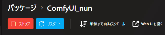 再度、Stability Matrixの該当comfyuiを起動します。