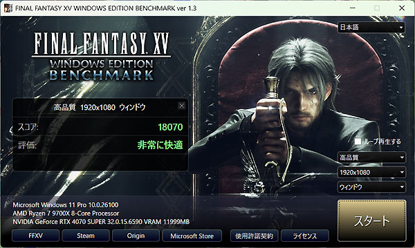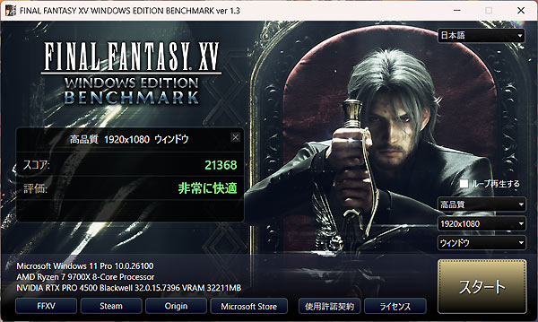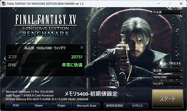 FINAL FANTASY XV WINDOWS EDITION benchmark ver1.3